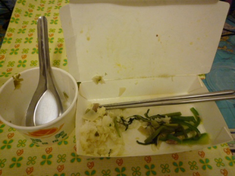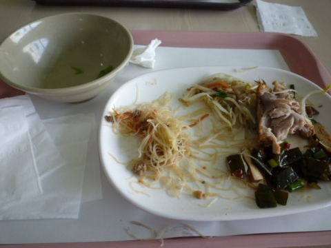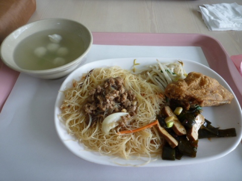 午餐:餐廳的炒米粉+炸雞塊+豆芽菜+海帶豆干+魚丸湯